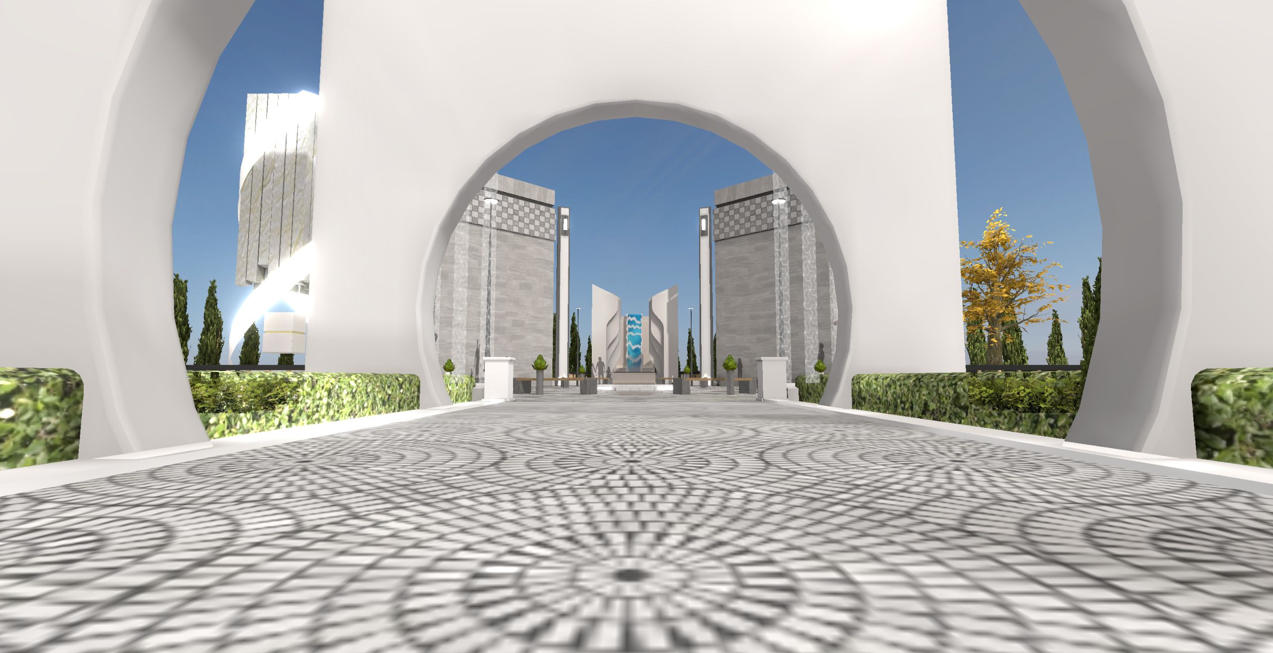 밝은 햇살이 비쳐지는 깔끔한 현대식 야외공원으로 제작하였습니다.